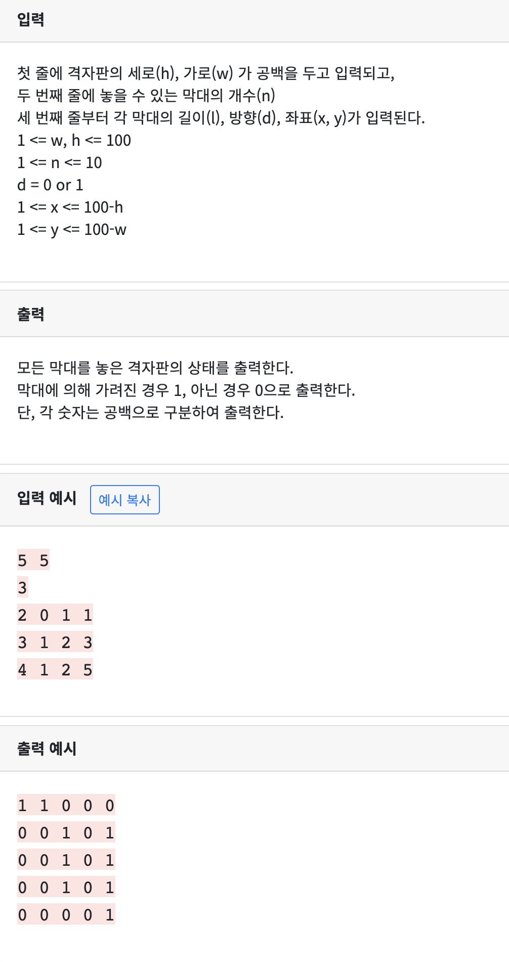 - d의 값이 0이면 가로 방향 (y에 더해야) 으로 놓여야 하고, 1이면 세로 방향 (x에 더해야) 으로 놓여야 한다.
